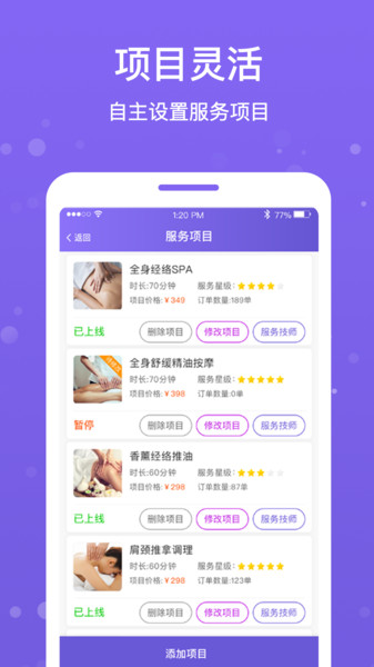 商户可完全自主定义服务项目内容和价格体系,满足不同客户群体的多样化需求。