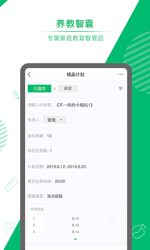 养而教倡导家长参与孩子的学习成长,帮助家长合理规划自己的时间和孩子的时间,通过合理的规划,有效提升亲子陪伴的质量。