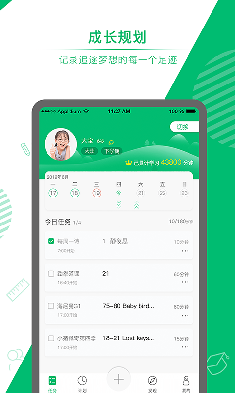 任务管理将宏观计划拆解为可执行的每日清单,通过趣味化界面设计提升孩子完成意愿。每项任务都配有详细说明和完成标准,家长可随时查看任务进度,系统会自动生成成长报告。