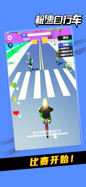 《极速自行车》是一款充满激情的冒险竞速手游,玩家将化身为一名技艺高超的自行车手,在充满挑战的山地赛道和繁华的城市街道中展开惊险刺激的竞速之旅。游戏不仅注重动作冒险元素,更强调玩家的操作技巧和快速反应能力,为玩家带来身临其境的竞速体验。精美的画面表现、流畅的操作手感以及丰富的游戏内容,让每一位玩家都能感受到风驰电掣的快感。无论是单人挑战还是多人竞技,这款游戏都能满足你对速度与激情的所有想象。