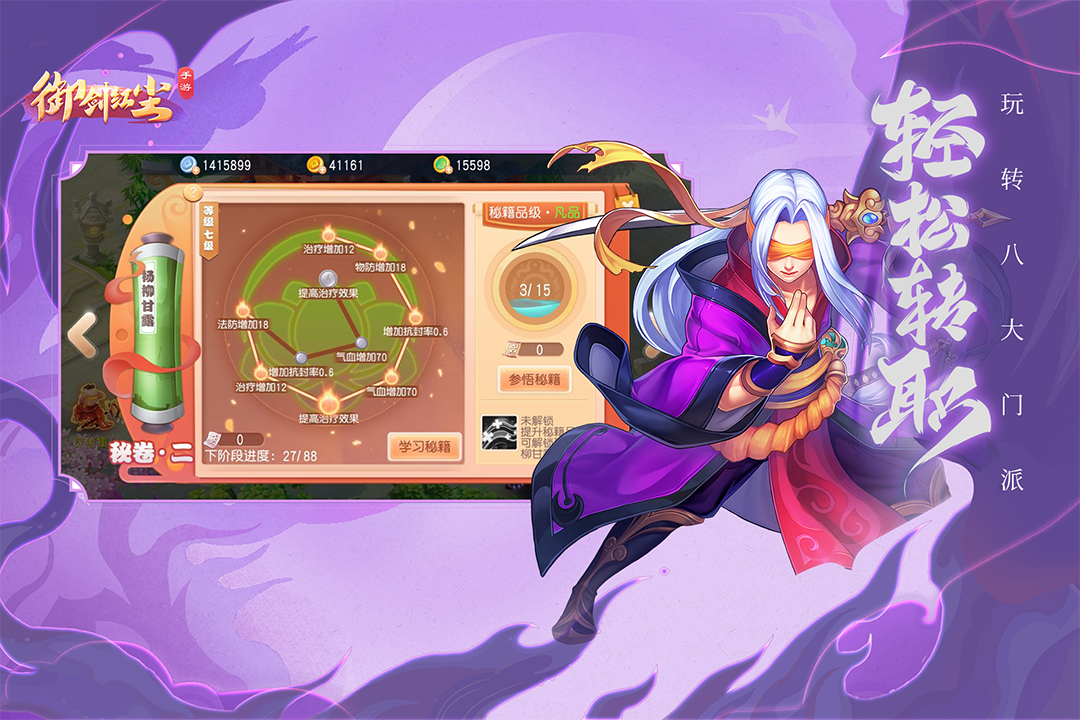 1、战斗系统创新性地融合了"轻功连招"与"法宝合击",玩家可自由组合上百种技能连段。新增的"剑意系统"会根据战斗风格自动进化招式特效。