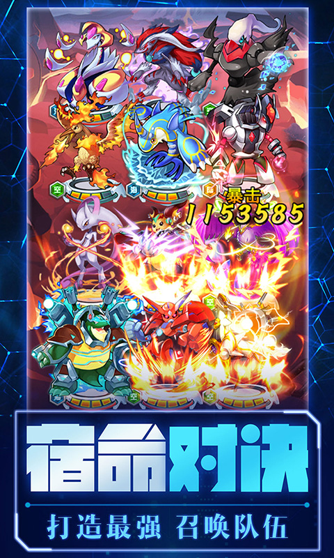 2、收录了超过500种不同属性的精灵,玩家可以自由组建六人战队,根据属性相克原理进行策略性搭配,打造最强阵容;