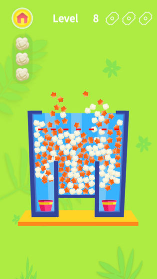 这是一款玩法简单但极具挑战性的休闲益智手游,玩家需要精准把握时间,通过点击控制爆米花的喷射量,让膨胀后的爆米花刚好填满容器。