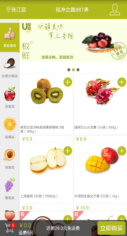 u掌柜app是一款专注于水果生鲜配送的移动购物平台,致力于为用户提供高品质的鲜果体验。平台精选当季新鲜水果,从源头直采确保品质,采用自营模式严格把控供应链。每天清晨专业团队进行采购分拣,配合高效的冷链配送系统,让用户在1小时内就能享受到从枝头到舌尖的新鲜美味。目前服务已覆盖上海、北京、广州等主要城市,无论是上班族的水果补给,还是家庭生鲜需求,都能快速满足。现在就下载体验,开启您的鲜果生活吧!