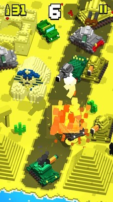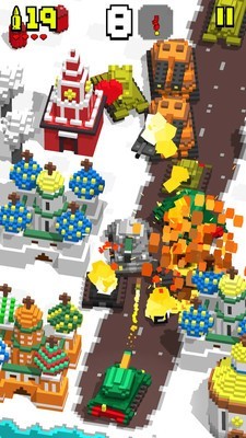 1、经典的3D像素画风,细腻的场景画面和画质。游戏采用独特的低多边形像素艺术风格,在保留怀旧感的同时,通过动态光影和粒子特效打造出令人惊艳的视觉效果。爆炸时的火光、坦克履带扬起的尘土都表现得栩栩如生。
