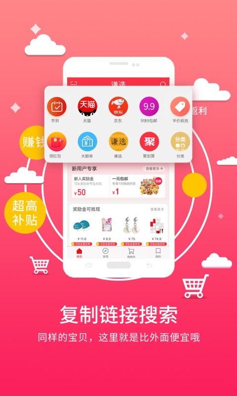 谦选App是一款集购物优惠与分享赚钱于一体的生活服务应用,致力于为用户提供高品质好物与超值福利。在这里,您不仅能以超低价格购买天猫、淘宝、京东等平台的精选商品,还能通过分享推广获得丰厚佣金奖励。平台每日推出0元购、9.9元包邮等超值活动,更有海量隐藏优惠券等您发现。无论是自用省钱还是创业增收,谦选App都能满足您的需求,让每一分钱都花得更有价值。