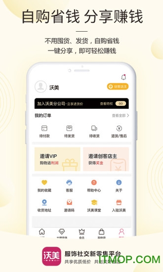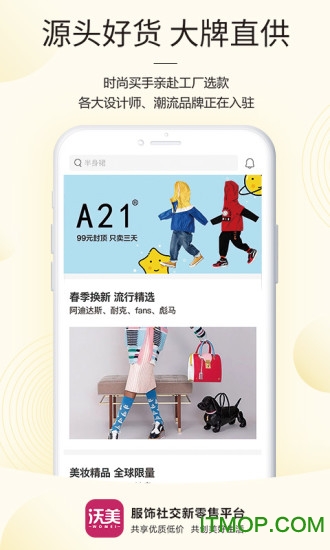 沃美优选是一个专注于服饰领域的移动端商城平台,致力于为创业者提供一站式开店解决方案。平台为每位店主打造专属的在线服饰品牌折扣店,让创业者无需实体店铺就能轻松开启创业之路。沃美优选独创的"先试后买"购物模式,不仅帮助代理商快速拓展客户资源、提升销售业绩,还能有效建立消费者信任,拓宽销售渠道。平台还提供完善的培训体系和运营支持,让每一位创业者都能快速上手,实现创业梦想。