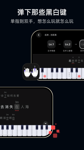 TheONE弹唱APP致力于唤醒每个人心中的音乐潜能,为你带来前所未有的乐器模拟体验。软件采用先进的音频技术,精准还原钢琴等乐器的真实音色和触感反馈。通过直观的视觉引导系统,即使是初学者也能轻松跟随提示弹奏出完整曲目。在这里,你可以尽情释放音乐热情,用旋律诉说内心故事。从经典名曲到流行热歌,丰富的曲库满足不同音乐爱好者的需求。让TheONE成为你探索音乐世界的完美伙伴,开启属于你的艺术人生。