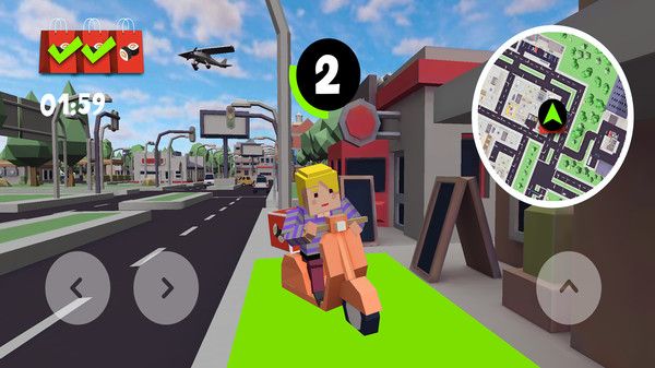 2、游戏采用清新可爱的像素画风,角色造型Q萌有趣,城市景观色彩明快。轻松愉悦的视觉风格让玩家在紧张配送之余也能享受放松的游戏氛围。