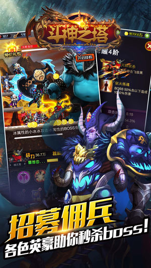 《斗神之塔》凭借其独特的点击互动玩法,重新定义了冒险手游的乐趣。游戏不仅操作简单易上手,还融入了丰富的策略元素,让玩家在轻松点击的同时也能感受到深度战斗的乐趣。即使离线,玩家依然可以通过挂机系统获得大量资源,真正做到游戏生活两不误。此外,游戏还提供了多种副本玩法,包括屠龙夺宝、黄金试炼等,让玩家在挑战中不断成长。招募各种技能酷炫的佣兵,组建强大队伍,与好友一起挑战强大的世界BOSS,体验团队协作的无限可能。
