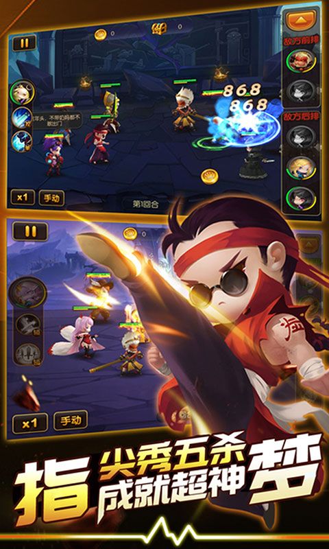 1、日韩Q版魔幻题材,全明星英雄阵容;游戏汇集了东西方神话中的经典角色,每个英雄都经过重新设计,保留了原型的特色又增添了Q萌元素。