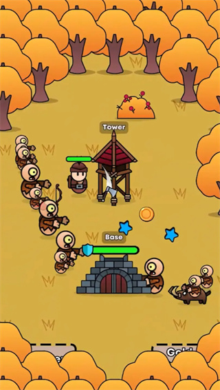 1、玩家需要在广袤的森林中四处探索,收集各类可用资源,包括砍伐树木获取木材、挖掘矿石获取金属等。利用这些资源建造坚固的防御基地,抵御敌人一波又一波的猛烈攻击。随着游戏进程,基地可以不断升级改造,形成完善的防御体系。