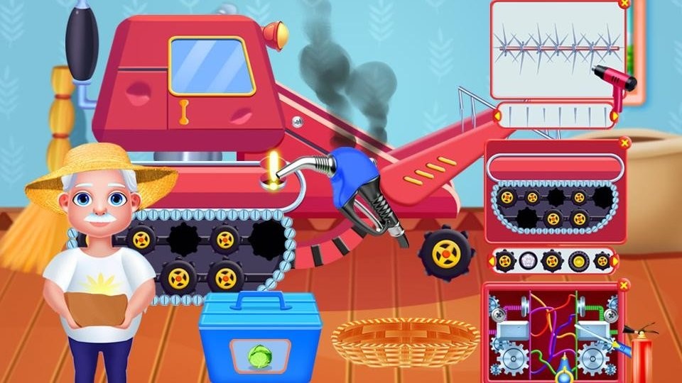 4.农用机械维修是个技术活,当收割机出现故障时,你需要仔细检查每个零件,找出问题所在并完成修理,确保收获工作顺利进行。