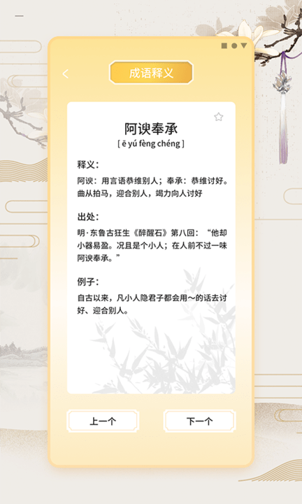 1、看图猜成语:通过生动形象的图片提示,让用户直观理解成语含义,加深记忆效果。2、成语接龙:创新的接龙玩法考验用户成语储备,在趣味互动中巩固已学知识。3、看图找成语:在复杂图片中寻找隐藏的成语,锻炼观察力和联想能力,提升学习趣味性。