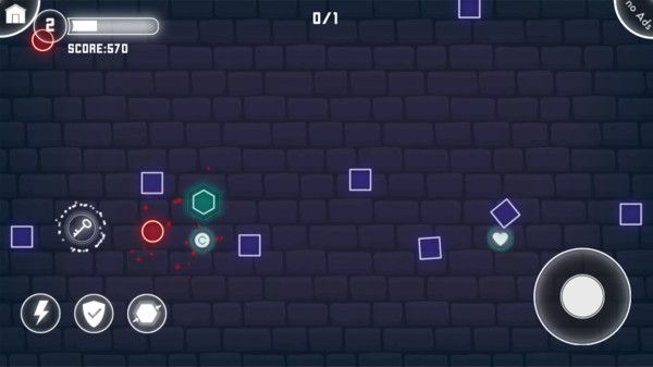 2、敌人会是不同形状的图形,你将避开它们让自己时刻保持安全的境地;每种几何敌人都有独特的移动方式和攻击模式,圆形敌人会滚动追击,三角形敌人会快速冲刺,你需要仔细观察它们的行动规律才能成功躲避。