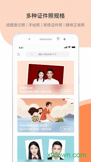 结婚证件照app是一款功能强大的证件照制作工具,专为结婚登记照和各类常规证件照设计。它不仅支持结婚登记照的精修处理,还能制作手绘风格、正装风格等多种个性化证件照。用户可以根据需求自定义尺寸,软件内置500种证件照规格,几乎涵盖所有使用场景。无论是求职、考试报名还是签证办理,都能轻松应对。此外,软件操作简单,随时随地都能拍摄并制作出精美的证件照,满足用户的多样化需求。
