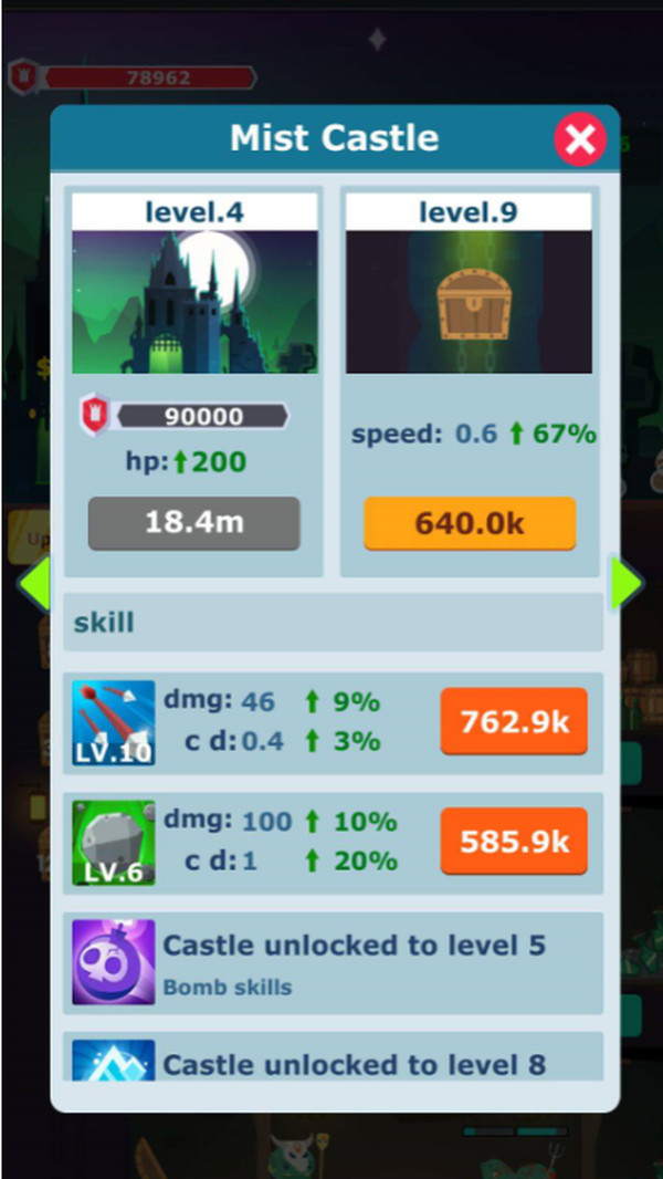 3、海量的游戏关卡,多样性的玩法,无穷无尽的人类战士朝着城堡走来。随着关卡推进,敌人类型和进攻方式会不断变化,保持游戏的新鲜感。
