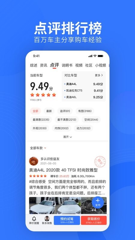 v10.48.0版本更新:点评功能新增补充点评选项,车型页面展示款间差异配置。本地频道增加销售联系方式,方便用户咨询优惠活动。