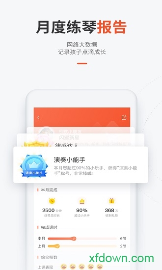 2、课后反馈:每节课后生成专属学习报告,包含视频回放、错误标注、进步曲线等10余项详细数据。老师会录制个性化指导视频,针对性地指出需要改进的演奏细节。