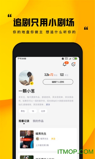 小剧场APP是专为短剧爱好者打造的追剧神器!经常刷微博的朋友一定见过那些令人上瘾的快手小剧场,剧情紧凑、风格多样,总是在最精彩处戛然而止。现在,这款APP不仅能让你看到完整版剧情,还能发现更多精彩内容。无论是都市爱情、古风穿越,还是悬疑推理,这里应有尽有。每天更新海量短剧,让你随时随地享受追剧乐趣,再也不用担心剧荒!