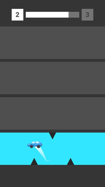 玩家只需要轻轻地点击汽车进行跳跃,有的障碍物太长难以跨过:操作方面采用极简设计,单指点击即可完成所有动作。游戏贴心地为不同长度的障碍设置了视觉提示,帮助玩家预判最佳起跳点。经过多次尝试后,玩家可以掌握"二段跳"等高级技巧,轻松应对各种复杂地形。
