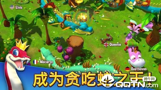 1、清新可爱的Q版风美术画面,带给你别具一格的视觉享受。游戏采用明亮鲜艳的色彩搭配,贪吃蛇造型呆萌可爱,场景设计充满童趣,让玩家在紧张刺激的对决中也能感受到轻松愉悦的氛围。