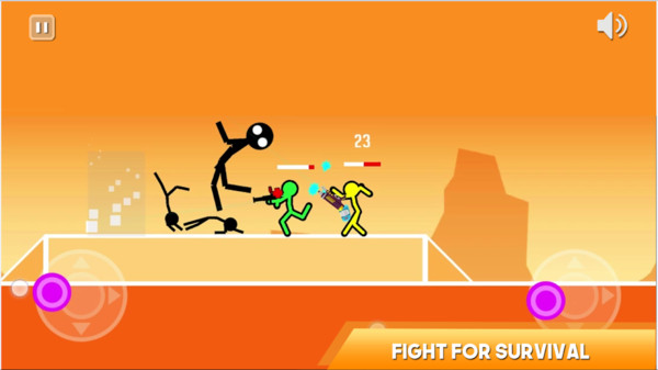 《至尊火柴人战士》是一款充满热血与激情的动作格斗游戏,以经典火柴人形象为核心,带给玩家极致的战斗体验。游戏中,你将操控身手敏捷的火柴人战士,在多样化的地图中展开激烈对决。通过灵活走位、精准操作和技能释放,躲避敌人攻击并寻找反击机会,最终击败对手赢得胜利。游戏采用简约而不失动感的画风,搭配流畅的战斗系统,让每一次交锋都充满策略性与爽快感。无论是单人闯关还是多人对战,都能让你感受到火柴人世界的独特魅力。