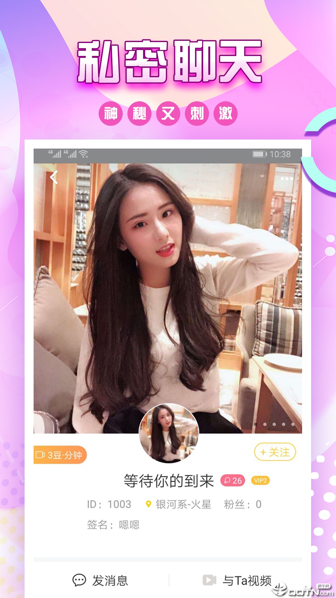 【1V1视频附近交友】专属的私密聊天室为你创造完美的二人世界,在这里你可以与心仪对象近距离交流。独享的私人空间让视频聊天更温馨,更亲密,打造专属于你们的甜蜜时光。