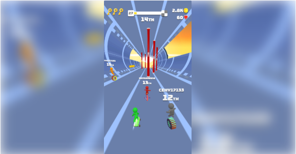 4、你前进的过程中不仅仅只有那些障碍阻挡着你,你的敌人还会想一些办法来攻击你。游戏加入了丰富的道具系统,玩家可以使用香蕉皮、烟雾弹等道具干扰对手,让比赛充满变数。