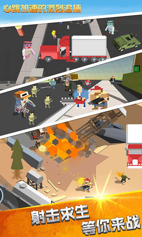 游戏采用全新的3D方块像素美术风格,画面色彩鲜明活泼,角色造型生动可爱,与紧张刺激的战场氛围形成鲜明对比,为玩家带来独特的视觉体验。