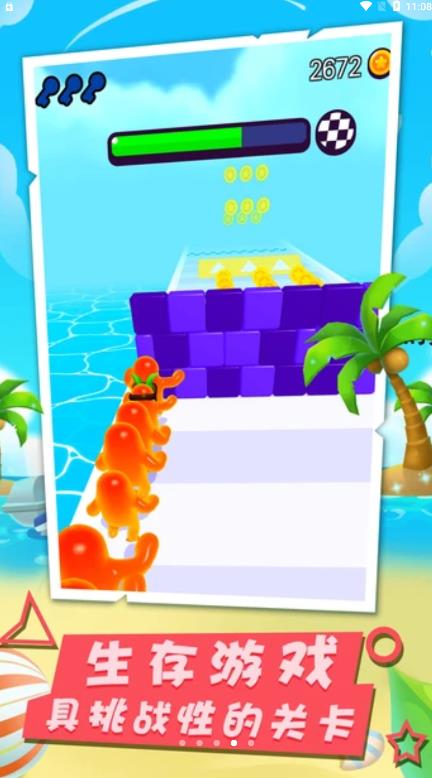 游戏最引人入胜的特色在于其创新的体型成长机制。玩家在奔跑过程中收集的果冻不仅会增加分数,还会让角色体积逐渐变大,这种视觉上的变化带来强烈的成就感。同时游戏设置了多种特殊障碍物,比如会切割果冻的激光、会吸走果冻的漩涡等,为闯关过程增添变数。终点奖励系统设计巧妙,根据玩家最终体型大小给予不同等级的宝箱奖励,激励玩家尽可能多地收集果冻。游戏还加入了排行榜功能,玩家可以与好友比拼最高分数。每日任务和成就系统让游戏具有持续的可玩性,每次闯关都能获得新的惊喜。