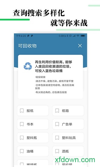 生活垃圾分类宝是一款专注于生活垃圾分类管理的专业应用,旨在帮助居民实现废品回收和环保知识普及。用户可通过APP对日常垃圾进行智能分类,扫描二维码完成投递流程。内置详细的垃圾分类引导系统,从源头培养居民的分类习惯。同时,APP还提供各类环保资讯和政策解读,让用户深入了解垃圾分类的重要性。通过科学管理生活垃圾,共同为环境保护贡献力量。