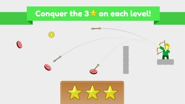 2、内置多关卡,设计理念由浅入深,轻松上手,但很难通关三星的所有关卡。关卡设计充满创意,从简单的固定靶到复杂的移动机关,循序渐进地提升玩家技巧,同时保持足够的挑战性。