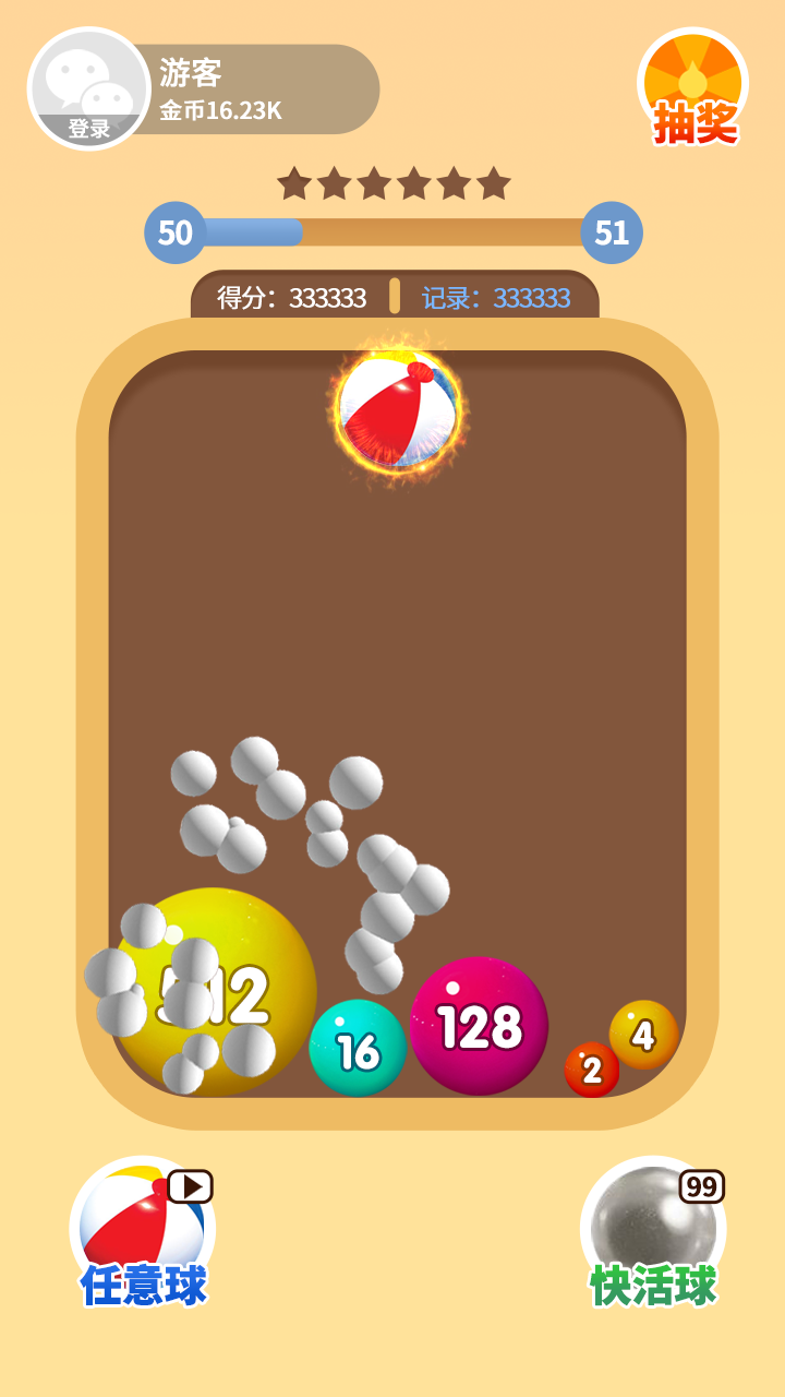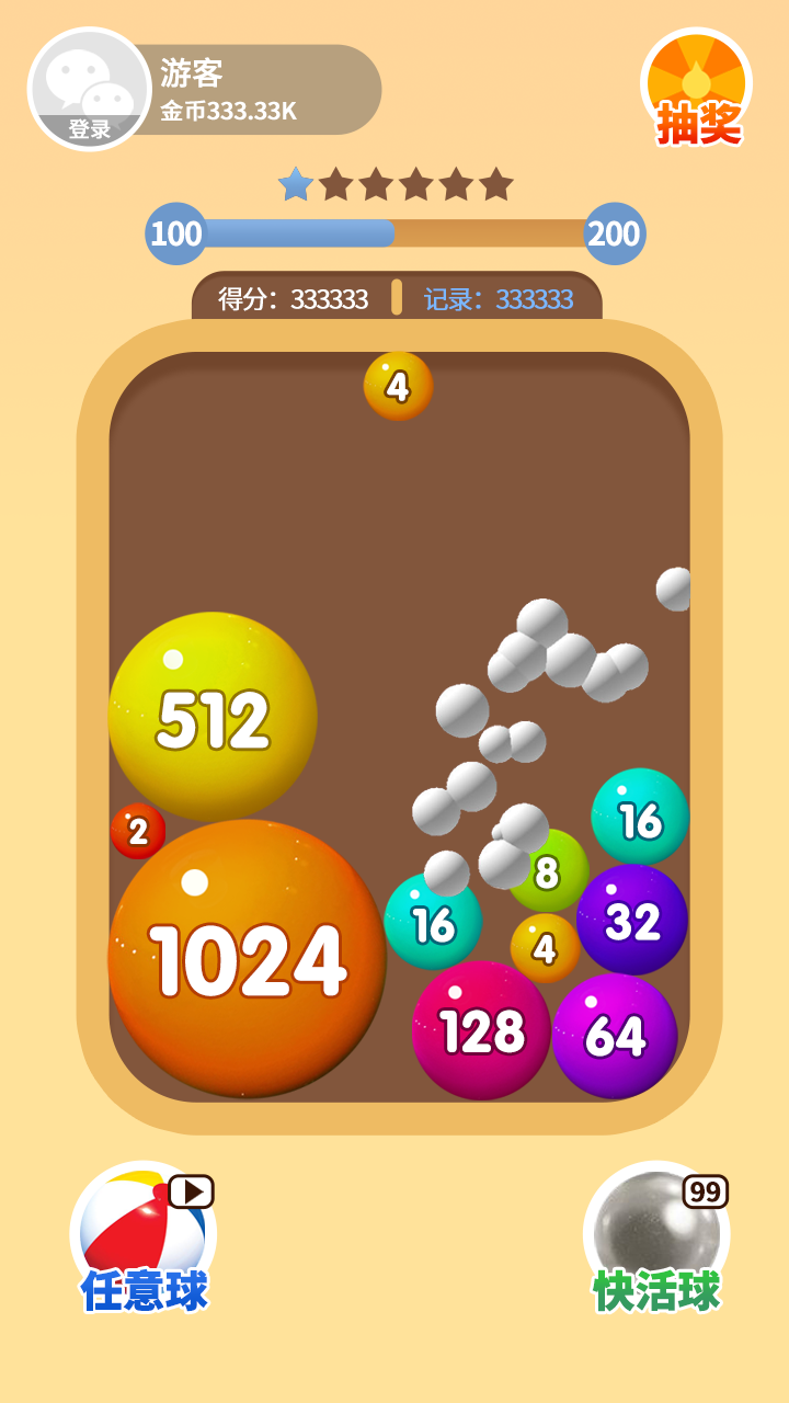 2、每个关卡都有明确的分数或小球数量要求,玩家需要通过不断合成来达成目标。随着游戏深入,合成策略会变得越来越重要。