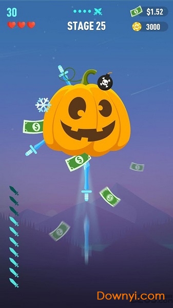 游戏采用渐进式难度设计,前30关作为新手教学,让玩家逐步掌握飞刀物理轨迹和靶盘旋转规律。中后期关卡会引入动态障碍物和移动靶心,考验玩家的预判能力。独特的"见缝插针"机制要求玩家必须精准计算飞刀落点,稍有不慎就会碰到已有飞刀导致失败。游戏内设有实时排行榜,玩家可以与全球飞刀高手一较高下。每周更新的主题关卡带来全新挑战,比如限时模式、无限飞刀模式等。最令人兴奋的是击中钞票区域时的特效反馈,伴随着金币洒落的动画和悦耳的音效,给玩家带来极大的成就感。