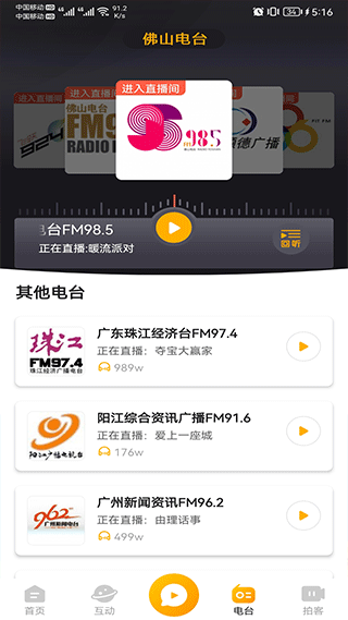 花生FM聚集了佛山最受欢迎的粤语主播团队,他们不仅专业素养过硬,还各具特色。用户可以通过弹幕、留言等方式与主播实时交流,参与节目讨论。主播们也会定期举办线上活动,拉近与听众的距离。