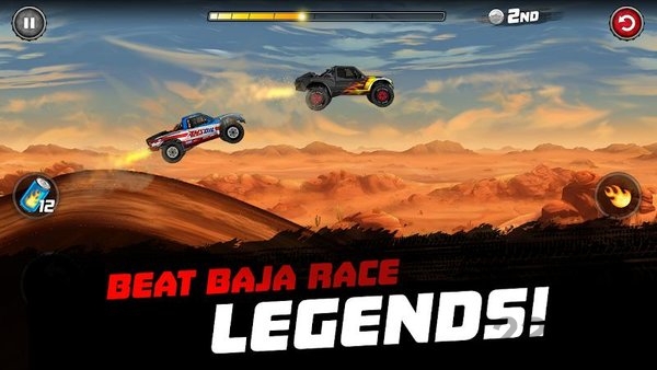 Baja Big Air将带给你前所未有的越野竞速体验,这是SCORE International官方授权的Baja沙漠拉力赛系列游戏。在游戏中,你将参与被誉为越野界最艰苦赛事之一的Baja 1000,亲自驾驶奖杯卡车驰骋在墨西哥下加利福尼亚州的广袤沙漠中。你将面对Tavo Vildosola、Casey Currie、Alan Ampudia等传奇车手的挑战,在极端地形中展现你的驾驶技术。游戏完美还原了真实赛事中的惊险刺激,从崎岖山路到松软沙丘,每个弯道都是对车手技术与毅力的考验。