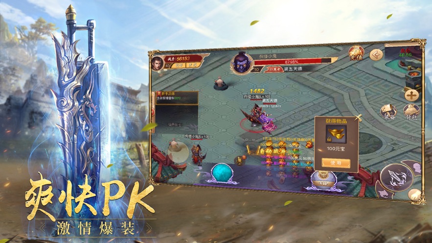 2、装备系统深度革新,屠龙、噬魂等神兵可自由强化升星,独创的装备共鸣系统让套装效果更强大;