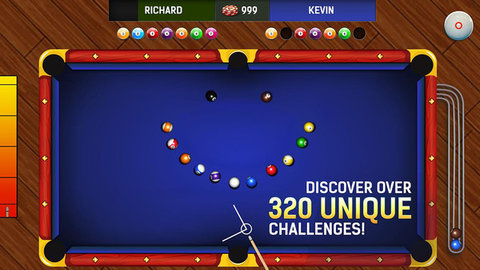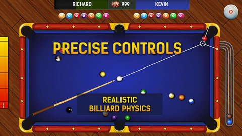 2、控制击球力度和击球角度。高球杆、中球杆、低球杆等不同的击球方式会产生不同的击球效果,完美还原专业台球技术;