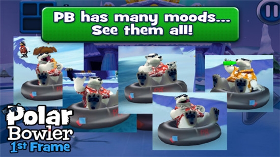 1、游戏创新性地加入了滑雪板竞速模式,玩家可以操控北极熊踩着滑雪板在冰道上疾驰,途中还要完成保龄球投掷任务。这种将竞速与保龄球结合的新颖玩法带来双重乐趣。