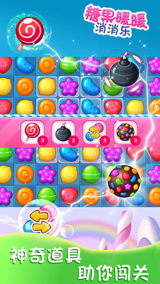 3、游戏中提供了多种实用道具,如炸弹、彩虹糖等,合理使用这些道具可以帮助玩家轻松应对高难度关卡,增加游戏的策略性和趣味性。