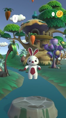 2、呆萌可爱的兔子角色形象,还有独特的角色配音,游戏趣味性极强。游戏为兔子设计了多种皮肤和装饰品,玩家可以通过收集金币解锁,个性化定制自己的角色。兔子在跳跃、摔倒时的表情和声音都充满喜感。