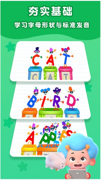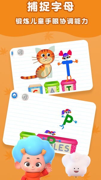 和26个造型可爱的字母交朋友,建立英语学习基础。