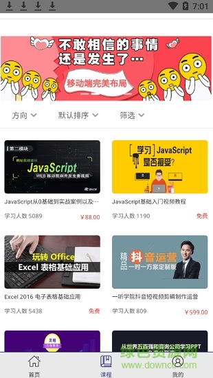 三人行慕课是一款专业的在线学习平台,专注于为学员提供金融财会、计算机技术和职业考试等领域的优质课程资源。平台拥有丰富的视频课程和图文教程,支持在线报名和离线下载功能,让学员可以随时随地开启学习之旅。无论是想提升专业技能,还是准备职业资格考试,三人行慕课都能满足不同学员的学习需求,帮助用户高效掌握知识要点。