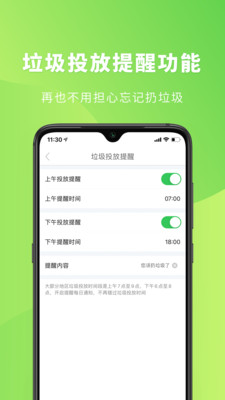 智能提醒系统可根据用户所在小区的垃圾投放时间自动设置提醒,支持多时段自定义。新增天气预报联动功能,遇雨雪天气会提前发送温馨提示。每月生成垃圾分类报告,帮助用户优化环保习惯。