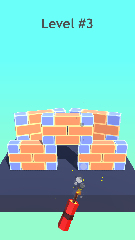 2、每个关卡都设计了形态各异的方块组合,从简单的直线排列到复杂的立体结构,不同的方块造型需要采用不同的爆破策略。