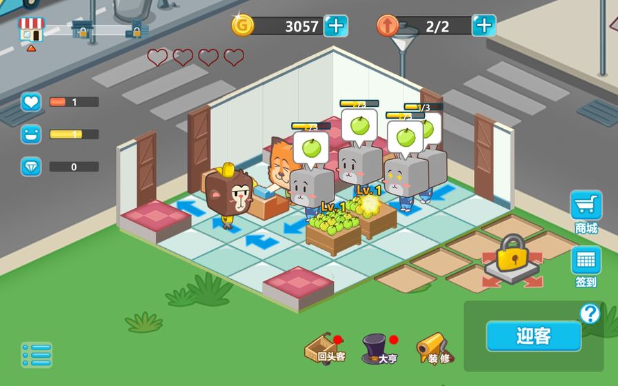 2、招募更多的员工为顾客服务,快速帮助顾客找到需要的商品。游戏中有十几种不同特性的动物员工可供雇佣,每个员工都有独特的技能和专长。聪明的狐狸收银员能加快结账速度,强壮的熊保安可以维持店铺秩序,细心的松鼠理货员能保持货架整洁。合理配置员工岗位,打造高效的服务团队是经营成功的关键。