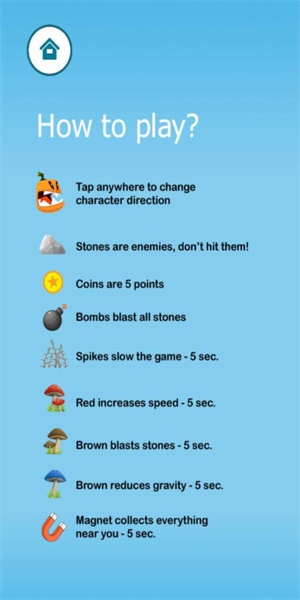 3、游戏内置详细的新手引导系统,会逐步教会玩家各种操作技巧。每个新出现的障碍物都会有明确的危险提示,特殊道具也会标注使用方法和效果,确保玩家能够快速上手并享受游戏乐趣。