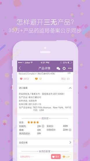 提供海淘化妆品比价参考成分查询的APP,以亚马逊网站为参考汇聚美丽修行30多万化妆品和1万多种成分数据。同步药监局化妆品备案,避免三无产品。我们的数据库每日更新,确保您获取最新最全的产品信息。特别开发的比价功能可一键对比国内外价格差异,帮您找到最划算的购买渠道。针对热门产品,我们还提供详细的使用评测和用户真实反馈,让您的购物决策更加明智。