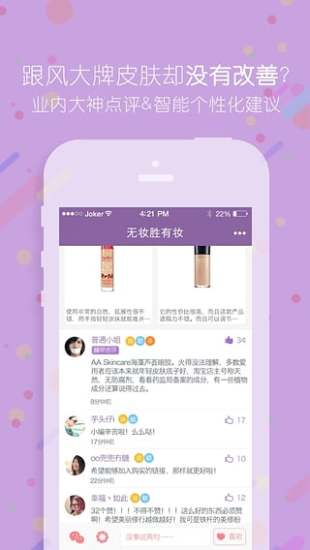 美丽修行苹果版是一款专为爱美女性打造的专业美容护肤应用,致力于帮助用户深入了解化妆品成分与护肤知识。通过科学的数据分析和丰富的社区互动,这款APP不仅能帮助您避开护肤误区,还能结识志同道合的美容爱好者。无论您是护肤新手还是美妆达人,都能在这里找到适合自己的产品与护肤方案。目前已有数百万用户通过美丽修行实现了更科学、更安全的护肤体验,现在就加入我们,开启您的美丽修行之旅吧!